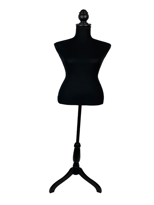 Female Dressing Foam Mannequin for Sewing Patterns, Adjustable HardWood Base, Black & White