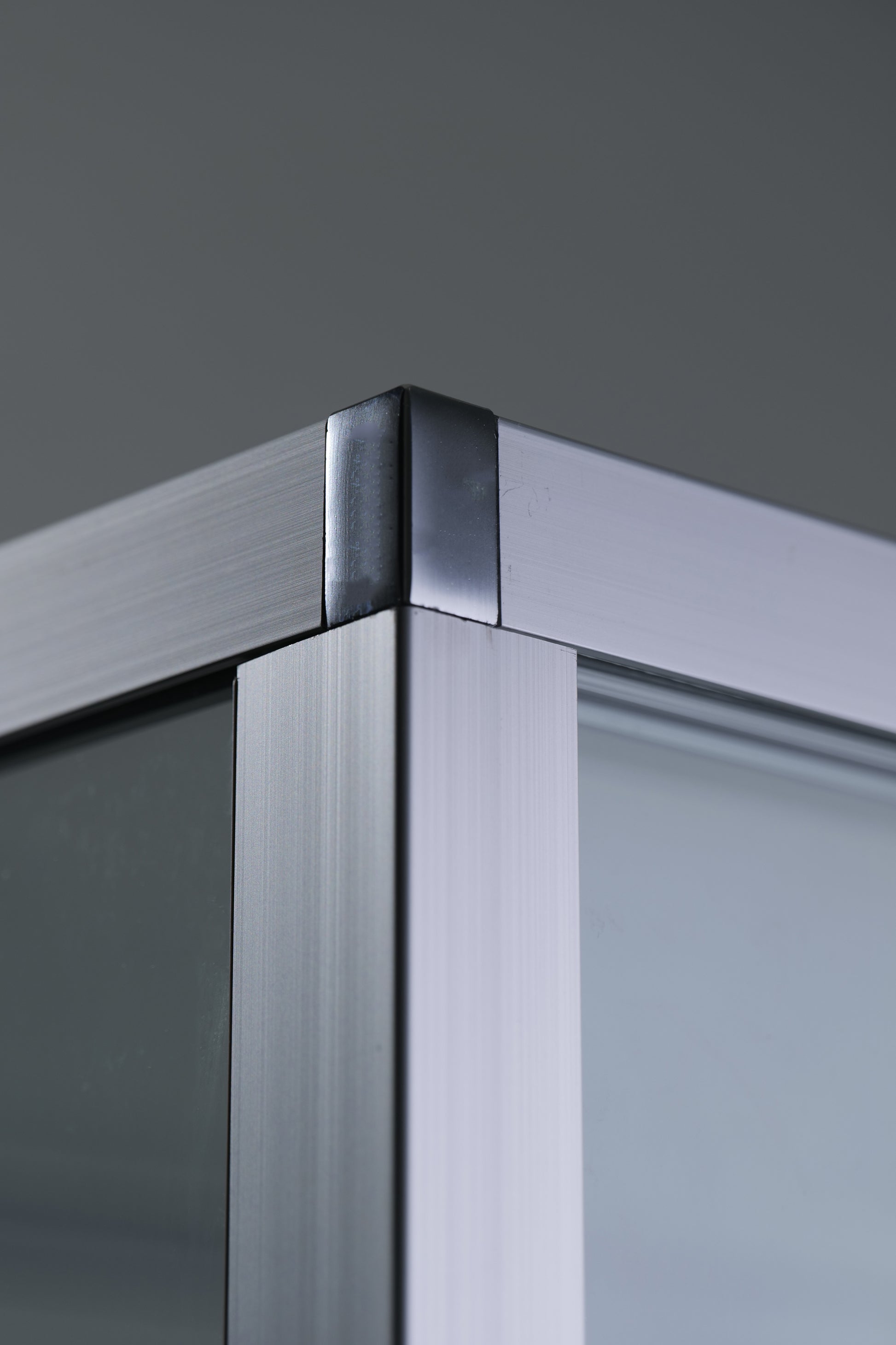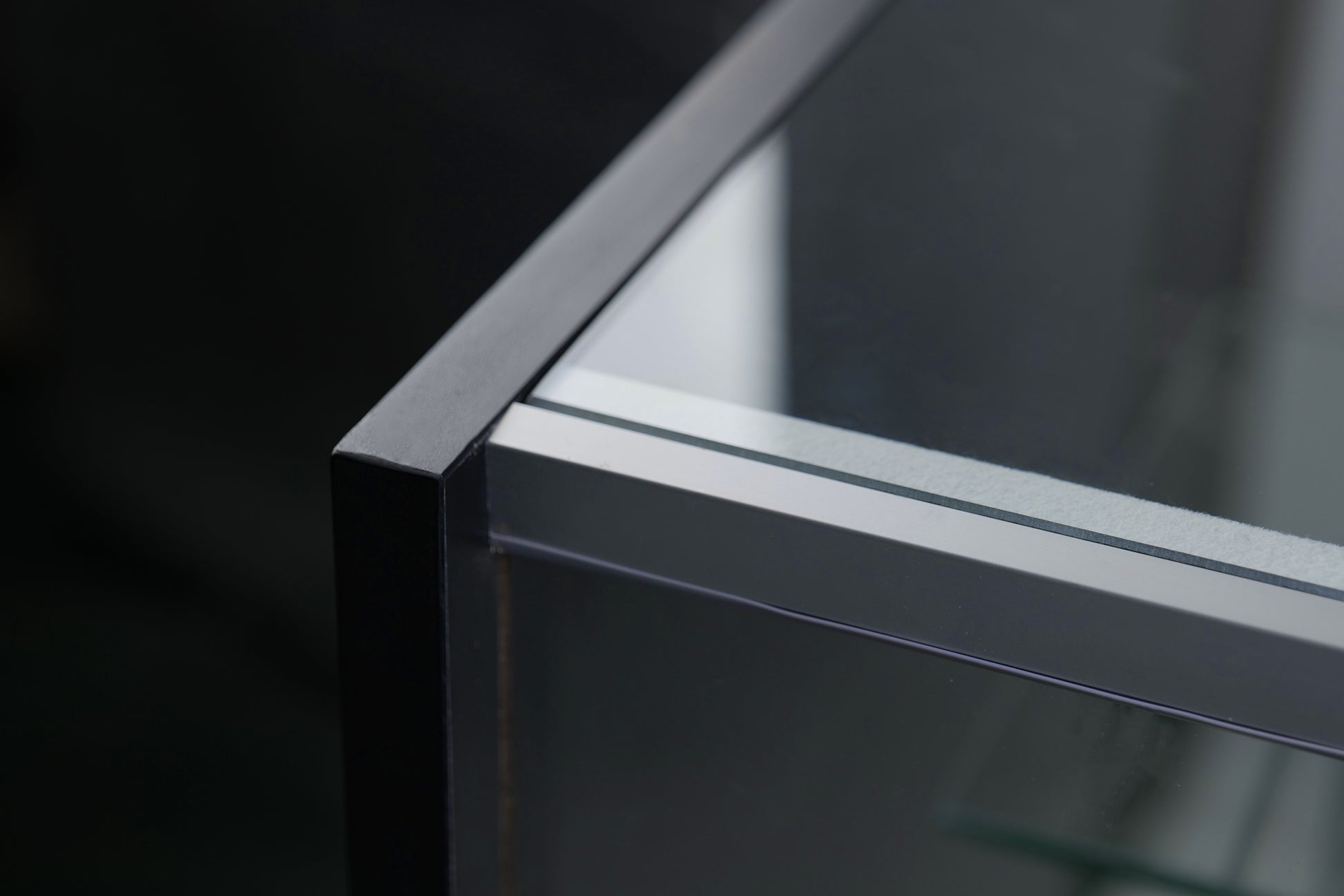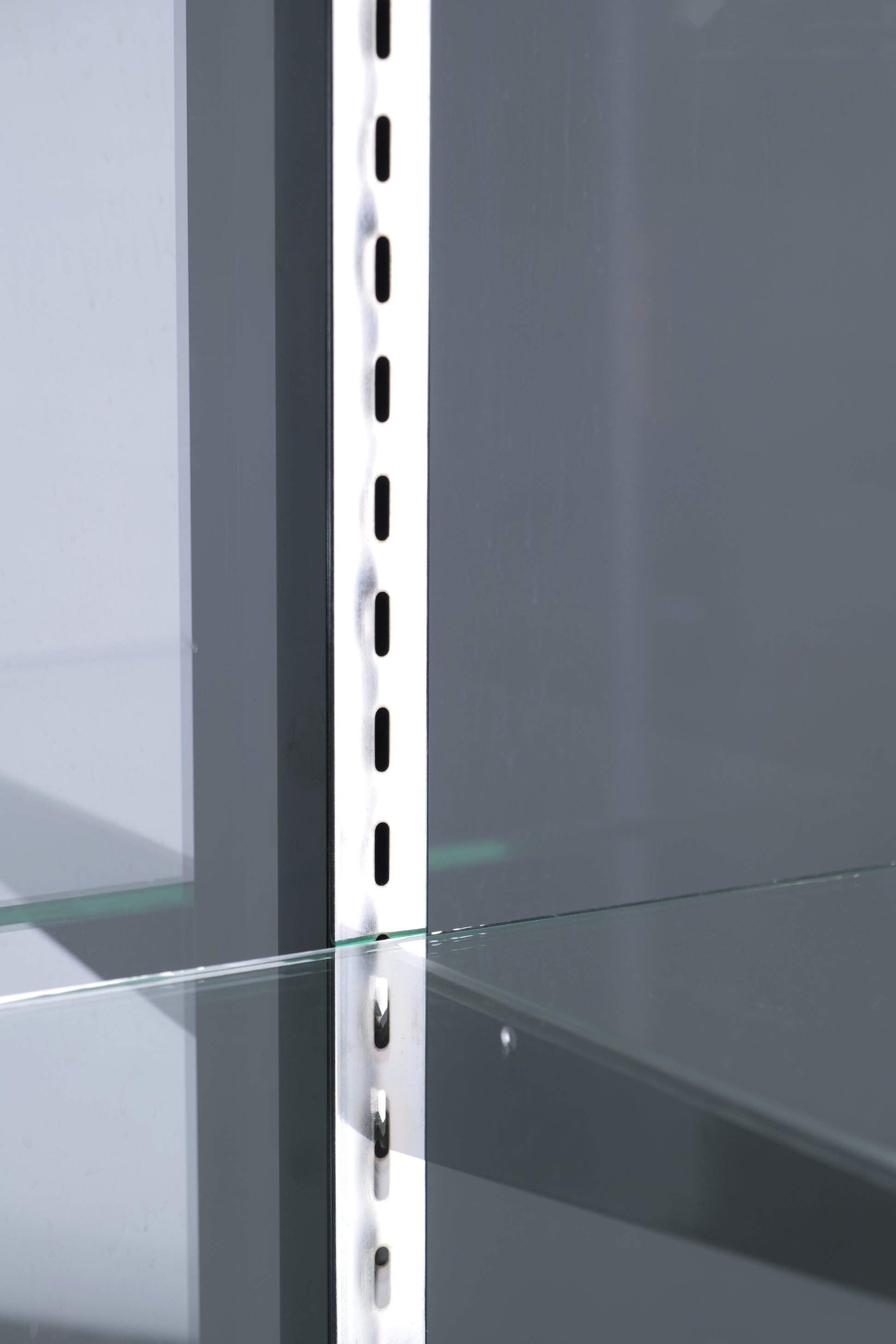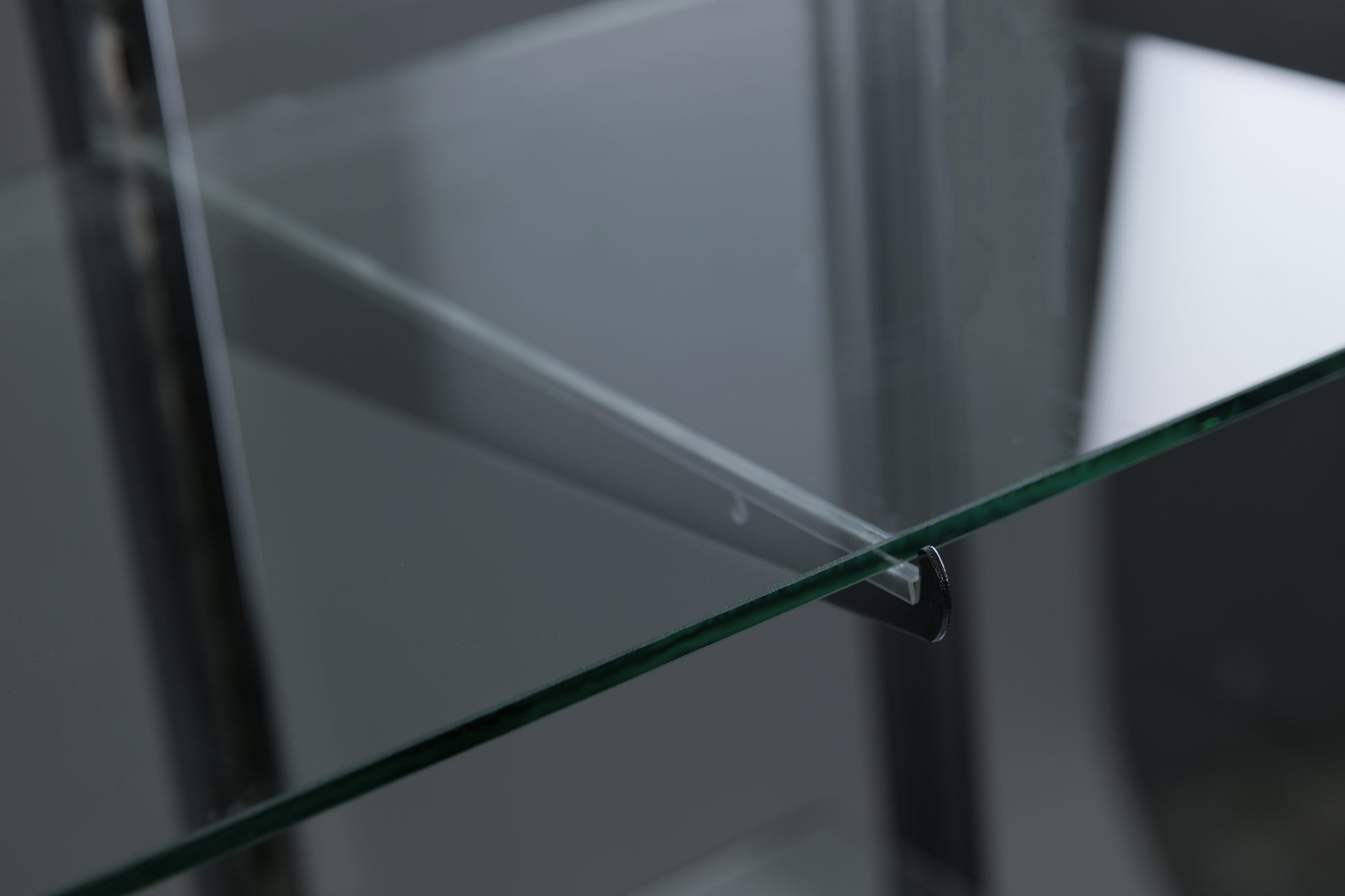 - 1/4" thick adjustable tempered glass shelving (tempered glass all around)